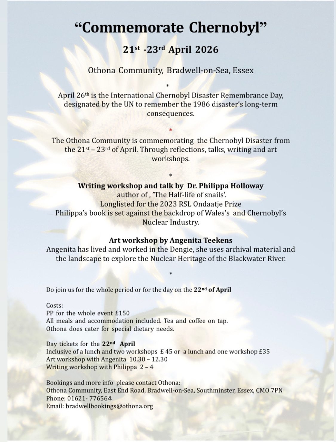 Commemorating the Chernobyl Disaster through reflections, talks writing and art workshops